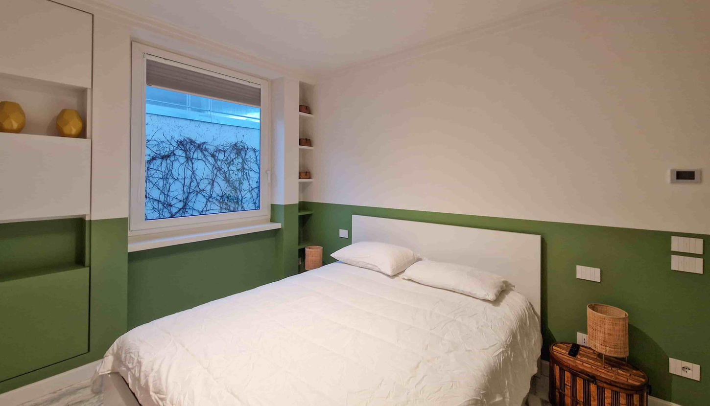 La zona notte comprende due camere matrimoniali e due bagni moderni con doccia. Completa la proprietà un pratico disimpegno attrezzato con lavatrice e asciugatrice.