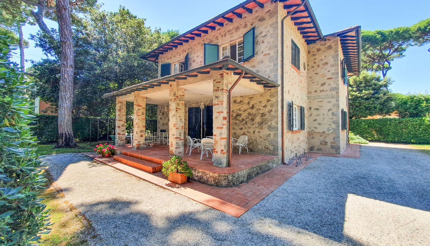 Splendida Villa Singola con piscina sita nel cuore della Roma Imperiale di Forte dei Marmi, a pochissimi metri dal mare. La Villa si sviluppa su due livelli, entrambi fuori terra, ed è così disposta: