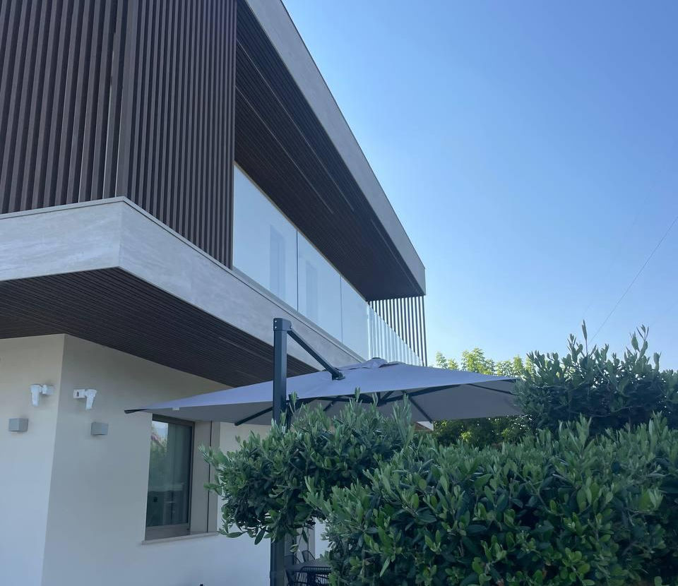 Splendida villa di nuova costruzione, immersa in un parco privato di 1.400 mq con piscina, situata a circa 1.300 metri dal mare, in un contesto riservato e di assoluta tranquillità.