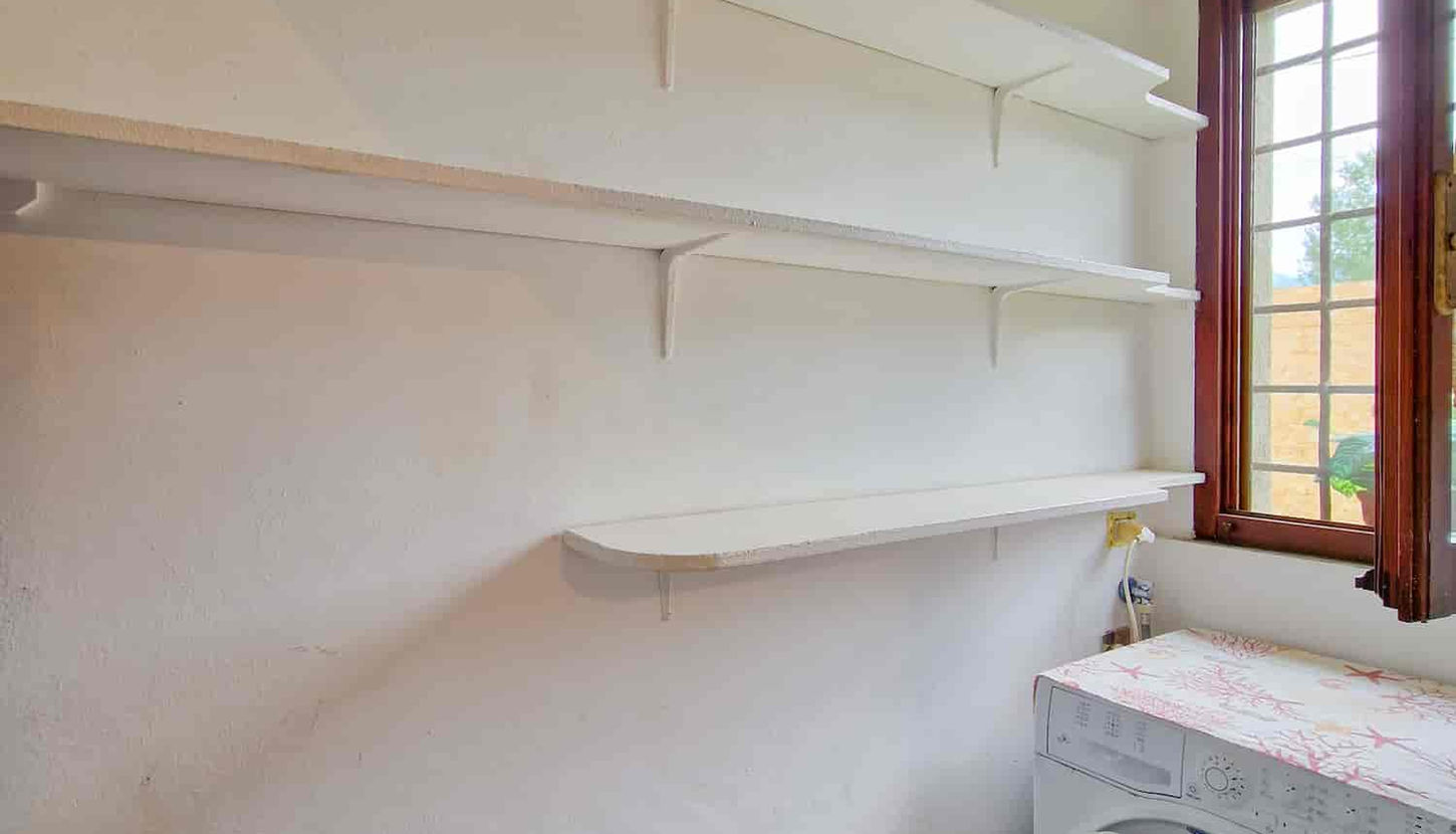 All'ingresso ci accoglie un salotto con zona pranzo, cucina semi-abitabile con dispensa e lavatrice, una camera matrimoniale, un bagno con vasca, ed una camera singola dalla quale si accede ad un bagno con doccia ed una camera con letto da una piazza e mezzo.